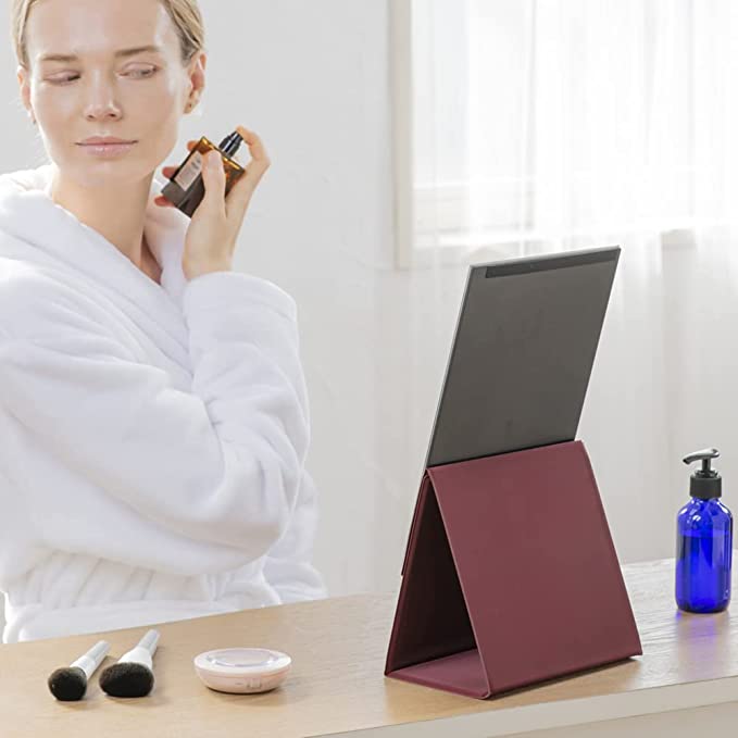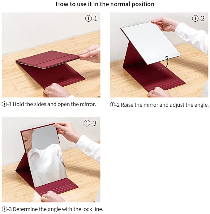 2WAYフォールディングミラーは、鏡の高さを変えてメイクができる折りたたみタイプのメイクミラーです。 メイクするとき鏡の高さが合わずにティッシュボックスや本の上に鏡を置いてメイクしていませんか?この商品を使うと高さ調整ができるので最適なポジションでメイクできます。