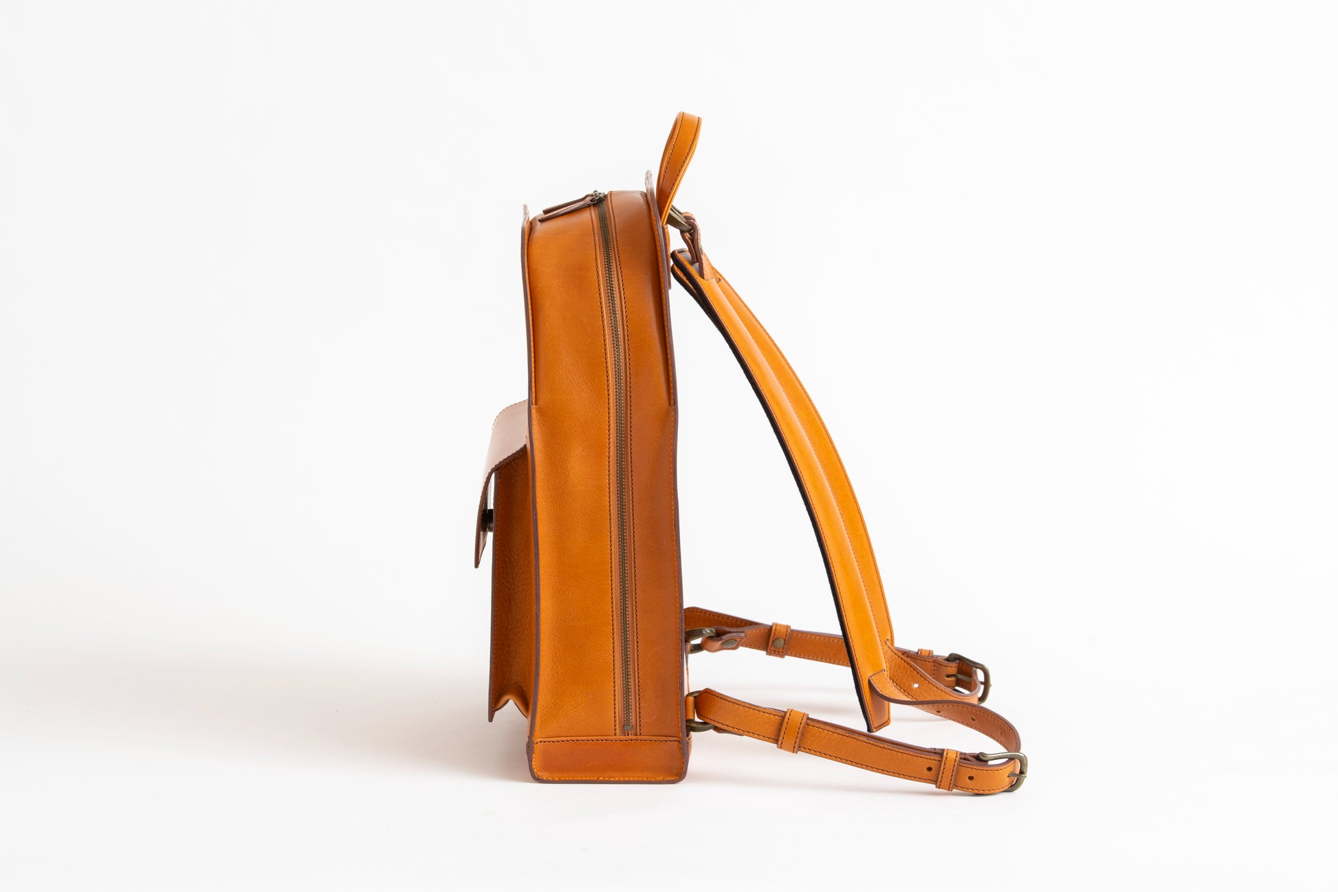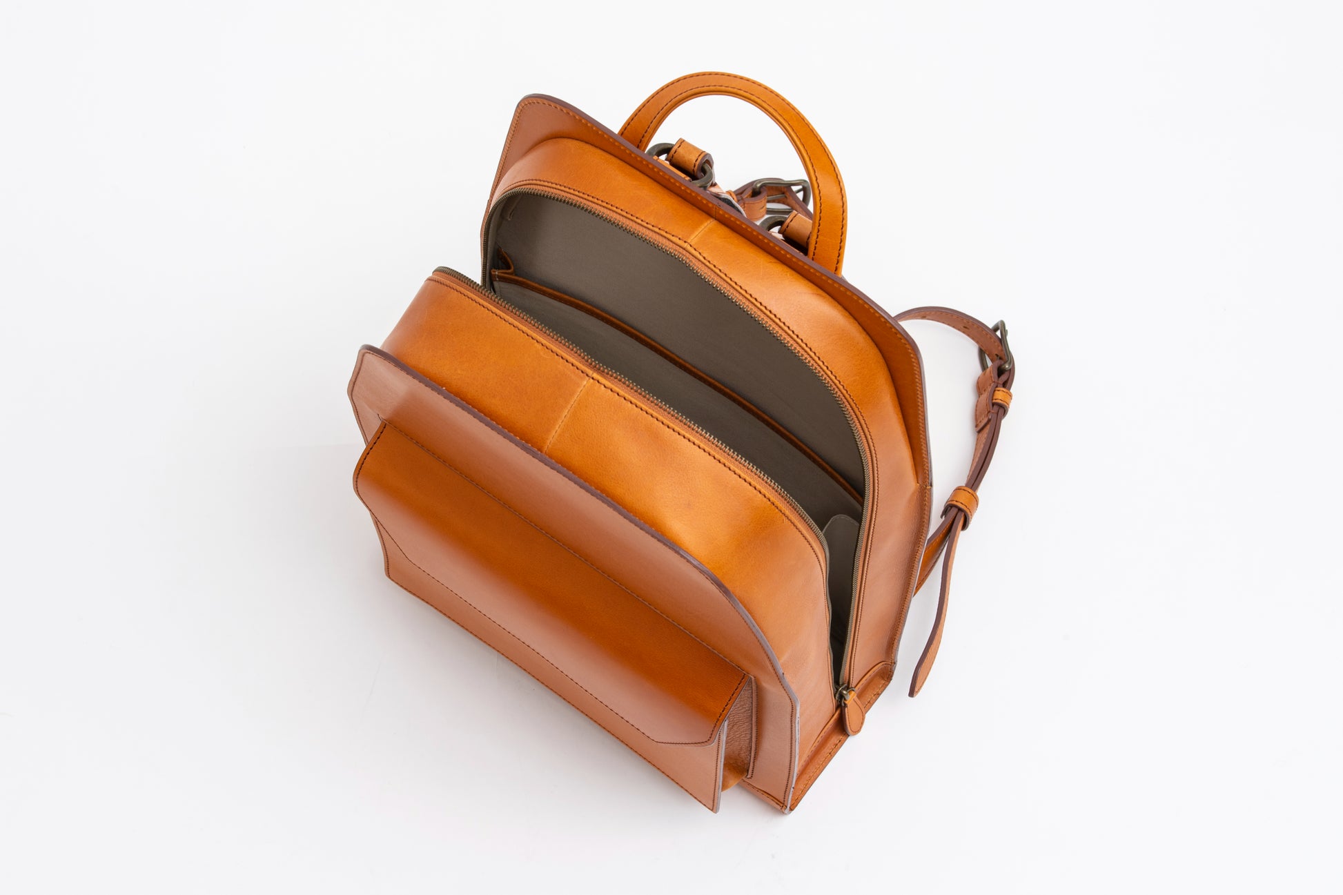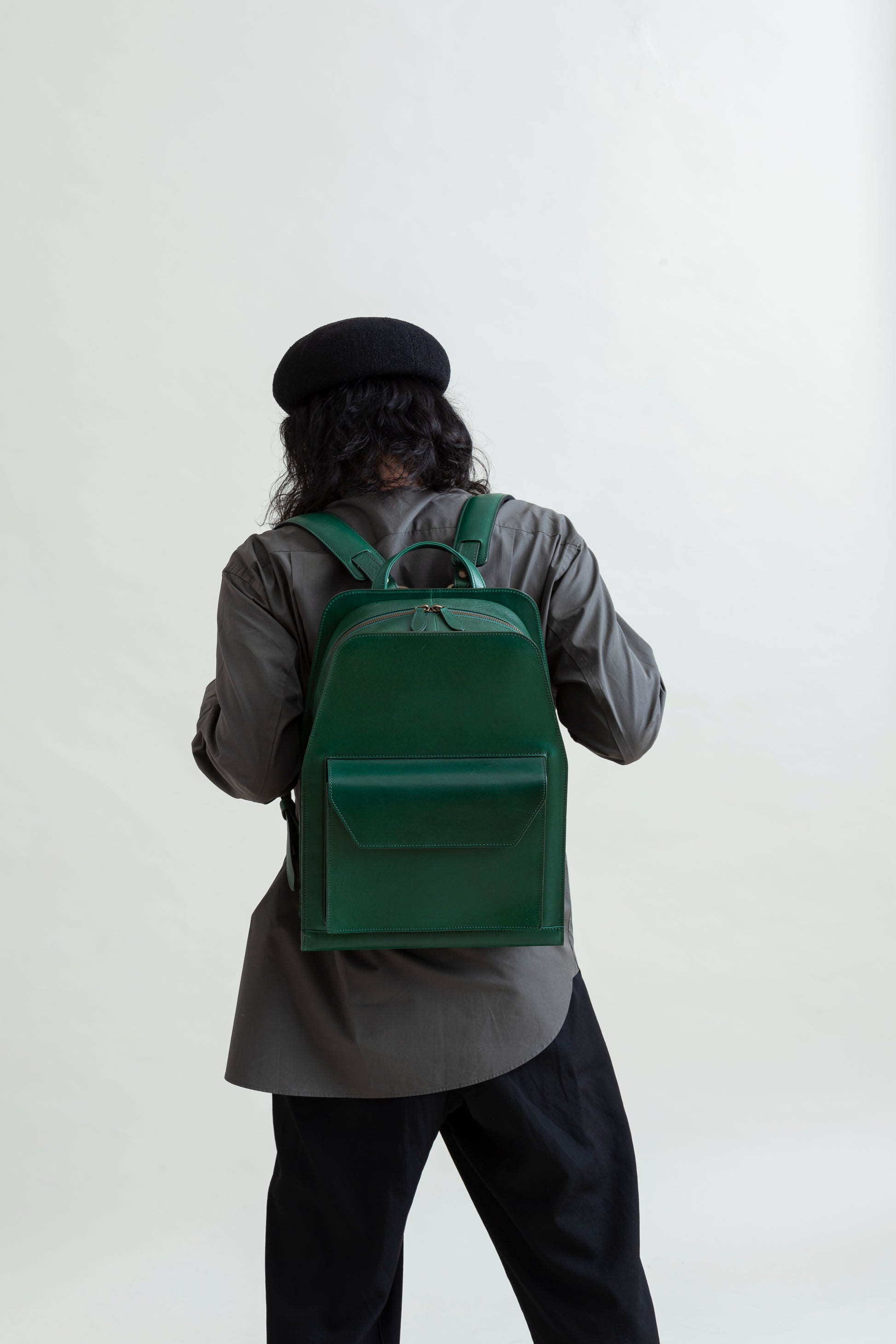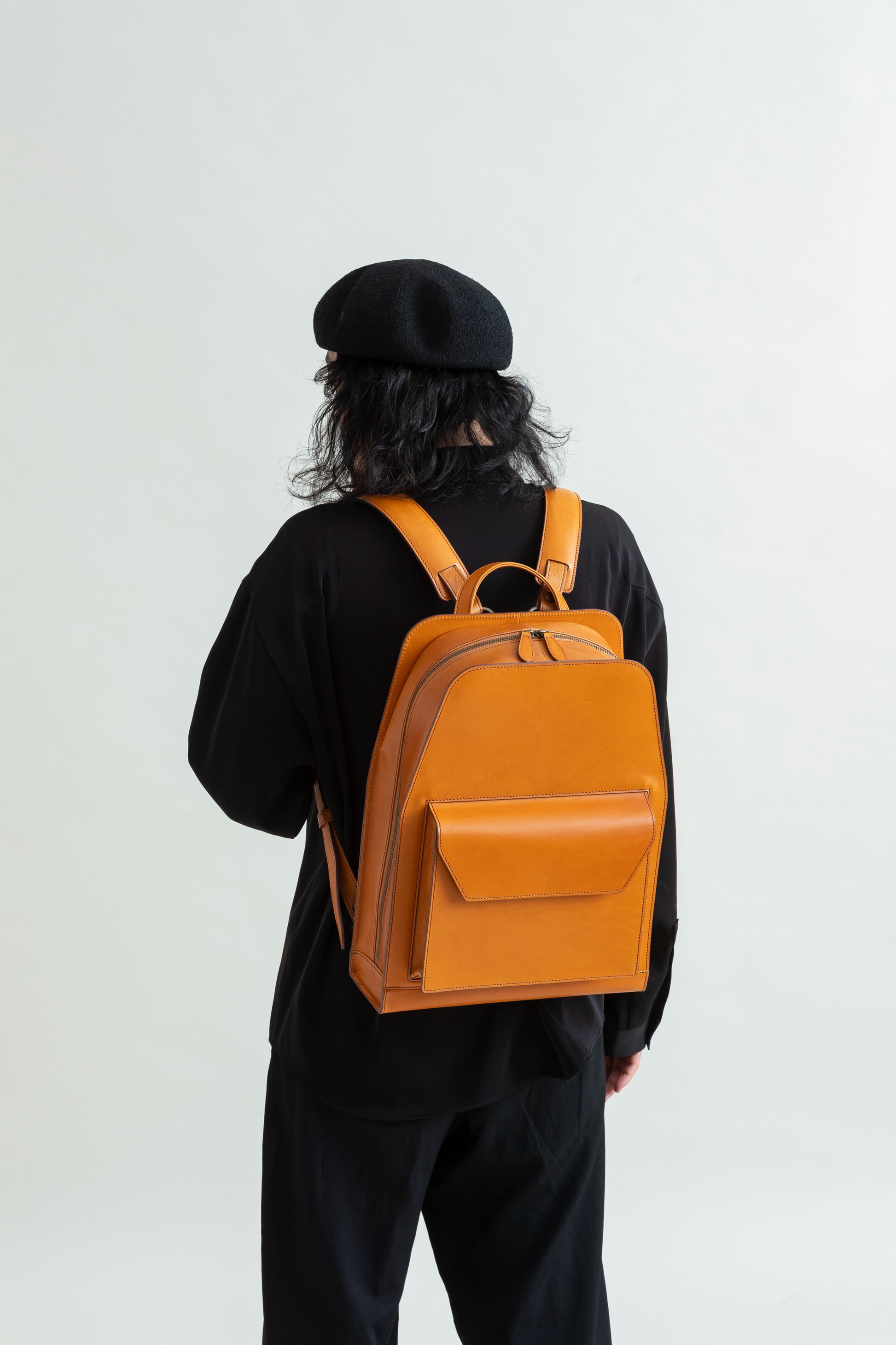 Hard leather is used for the body while soft leather is used around the zipper, allowing the backpack to fit perfectly with both business and casual outfits.