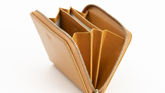 上質なヌメ革を使ったスリムな財布。
