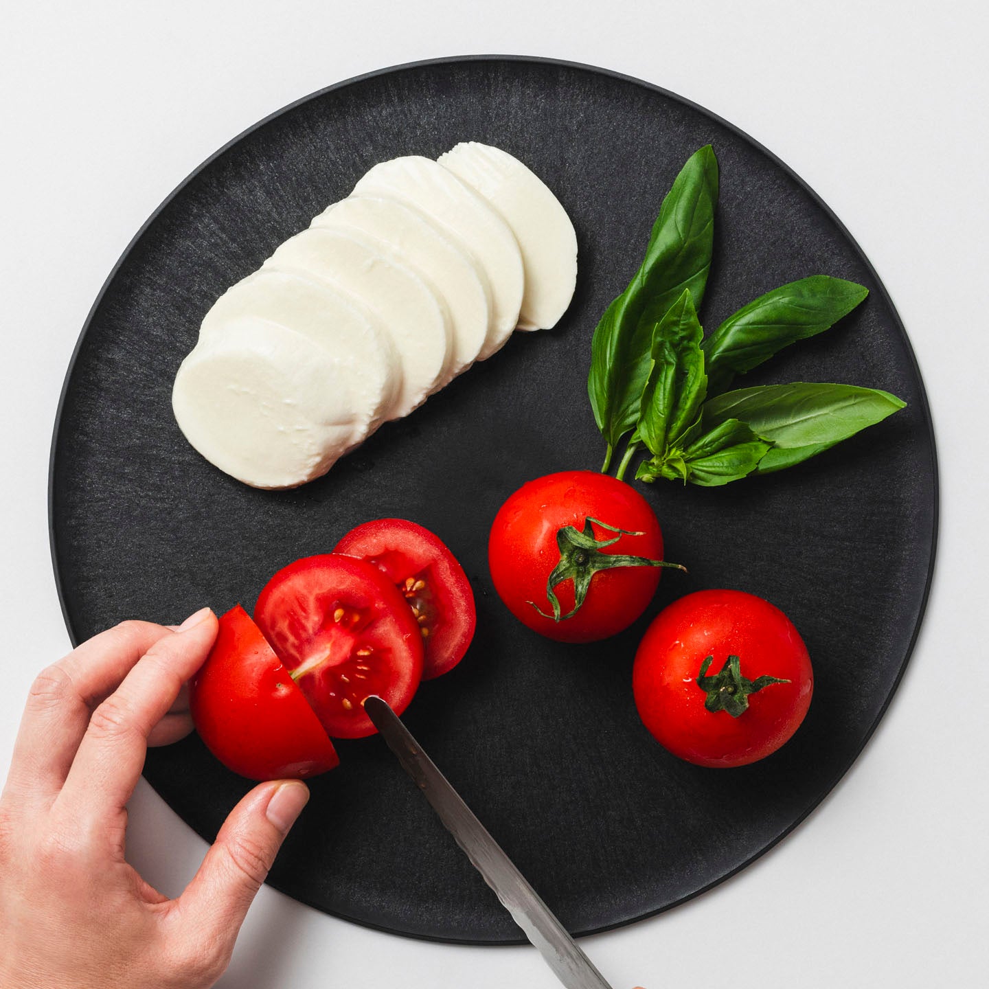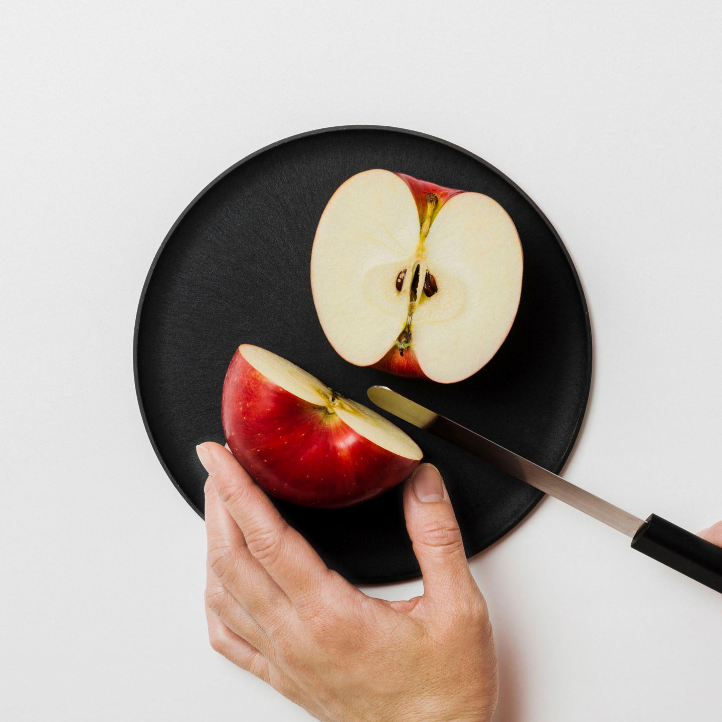 切りたてを食べられる、フルーツやパンやおつまみなどをちょっと切りたい。テーブルの上の料理を子供が食べやすいサイズに切り分けたい。そんなときに使いやすい、まな板になるお皿。