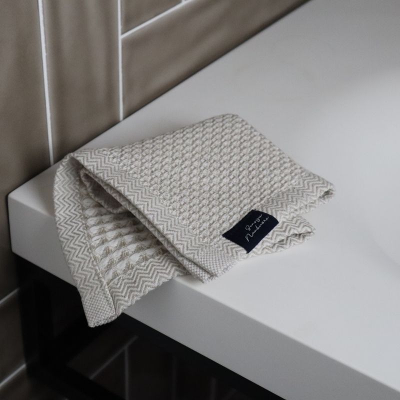 ワッフルとハニカム織りが交互にデザイン。 リネン特有のシャリ感は爽やかな風合いを演出します。リネンは高い吸水性と速乾性が特徴。 同時にコットンの柔らかさも感じ取ることができます。 後晒の際にも化学薬品を一切使用しない酵素の力で汚れを落とす製法を採用し、環境にも人にも優しいタオルです。 2021年度 おもてなしセレクション金賞受賞商品。