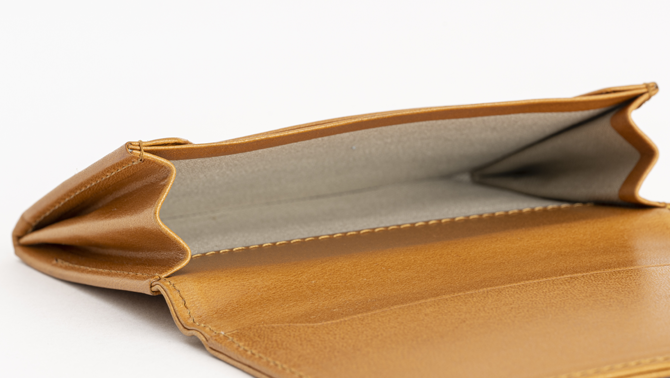 植物タンニンで鞣されたヌメ革オルフェスは、手触りがよく、手に取るたびに撫でたくなるような質感です。