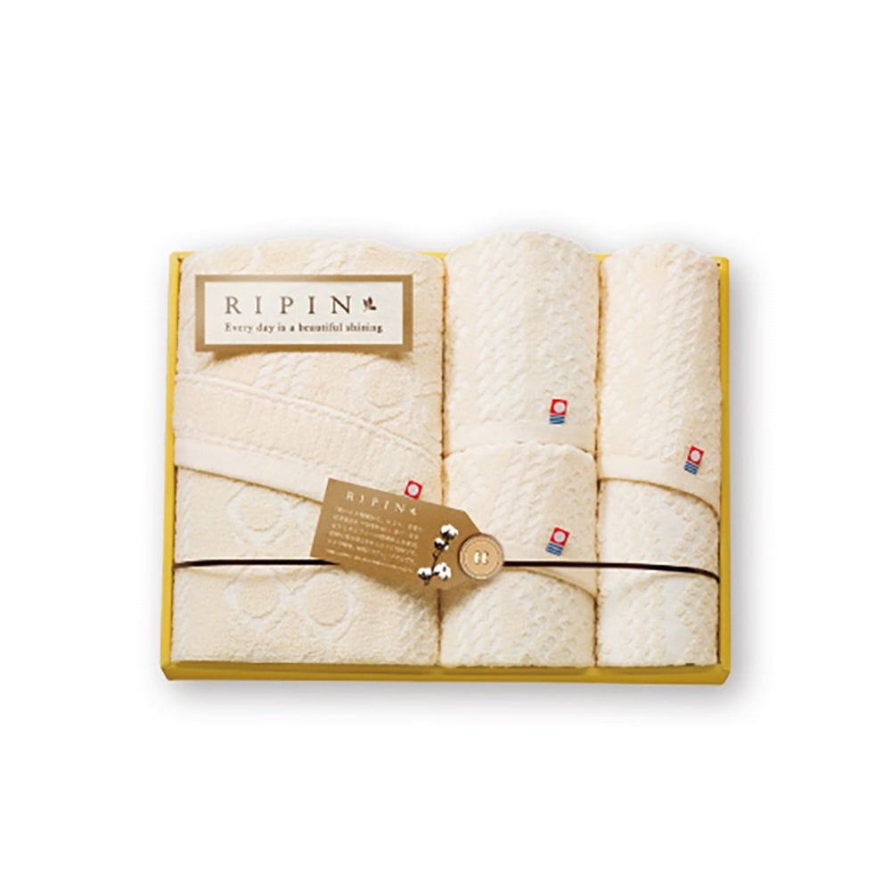 Imabari RIPIN Gentle Towel 4pc Gift Set (Bath Towel 1pc, Face Towel 2pc, Wash Towel 1pc)