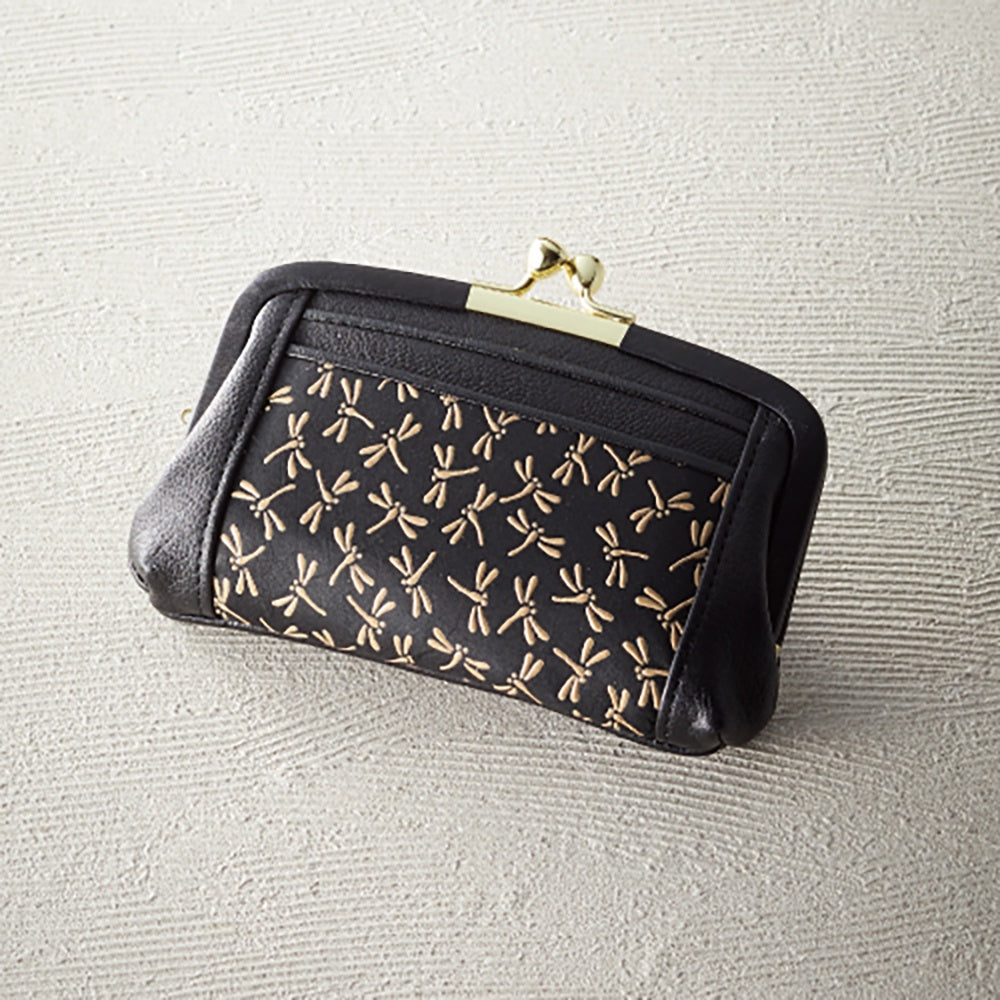 Parent-child maffe type wallet with small migration inside. In front of you, two-stage pocket that can store IC cards and point cards, etc. There are a lot of fine cramps, and it is a leather material that dyeing the deer leather that is considered to be good. Because the dragonfly pattern is never flying backwards, it is called "winning insect", and it is also famous as a battle pattern that the warlords are like and the warlords are good. About 9 × Horizontal 14.5 × Thickness 2 cm